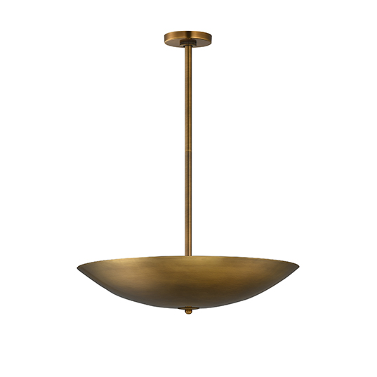 Symbolic of the hearth and home, the Vesta collection draws inspiration from the Roman goddess represented by the fire of her temple. Large diameters of shallow, inverted vessels disperse indirect light upward scattering softer, ambient light toward the ceiling. Purposeful in design and its applications, a Dim-to-Warm feature is integrated into the LED light engine so that as you adjust a dimmer switch, the light emitted becomes warmer and more relaxing. Highly reflective, polished metal finishes of rich French Gold or cool Polished Chrome elevate the minimalistic forms with vibrancy, while dramatic two-tone options combining "Mat" White or "Mat" Black shades allow for more neutral compositions. Available in pendant, sconce, and table lamp configurations this collection demonstrates Mat Sanders' expertise in creating product and spaces that are both effortlessly sophisticated and pleasantly welcoming.