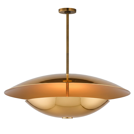 Symbolic of the hearth and home, the Vesta collection draws inspiration from the Roman goddess represented by the fire of her temple. Large diameters of shallow, inverted vessels disperse indirect light upward scattering softer, ambient light toward the ceiling. Purposeful in design and its applications, a Dim-to-Warm feature is integrated into the LED light engine so that as you adjust a dimmer switch, the light emitted becomes warmer and more relaxing. Highly reflective, polished metal finishes of rich French Gold or cool Polished Chrome elevate the minimalistic forms with vibrancy, while dramatic two-tone options combining "Mat" White or "Mat" Black shades allow for more neutral compositions. Available in pendant, sconce, and table lamp configurations this collection demonstrates Mat Sanders' expertise in creating product and spaces that are both effortlessly sophisticated and pleasantly welcoming.
