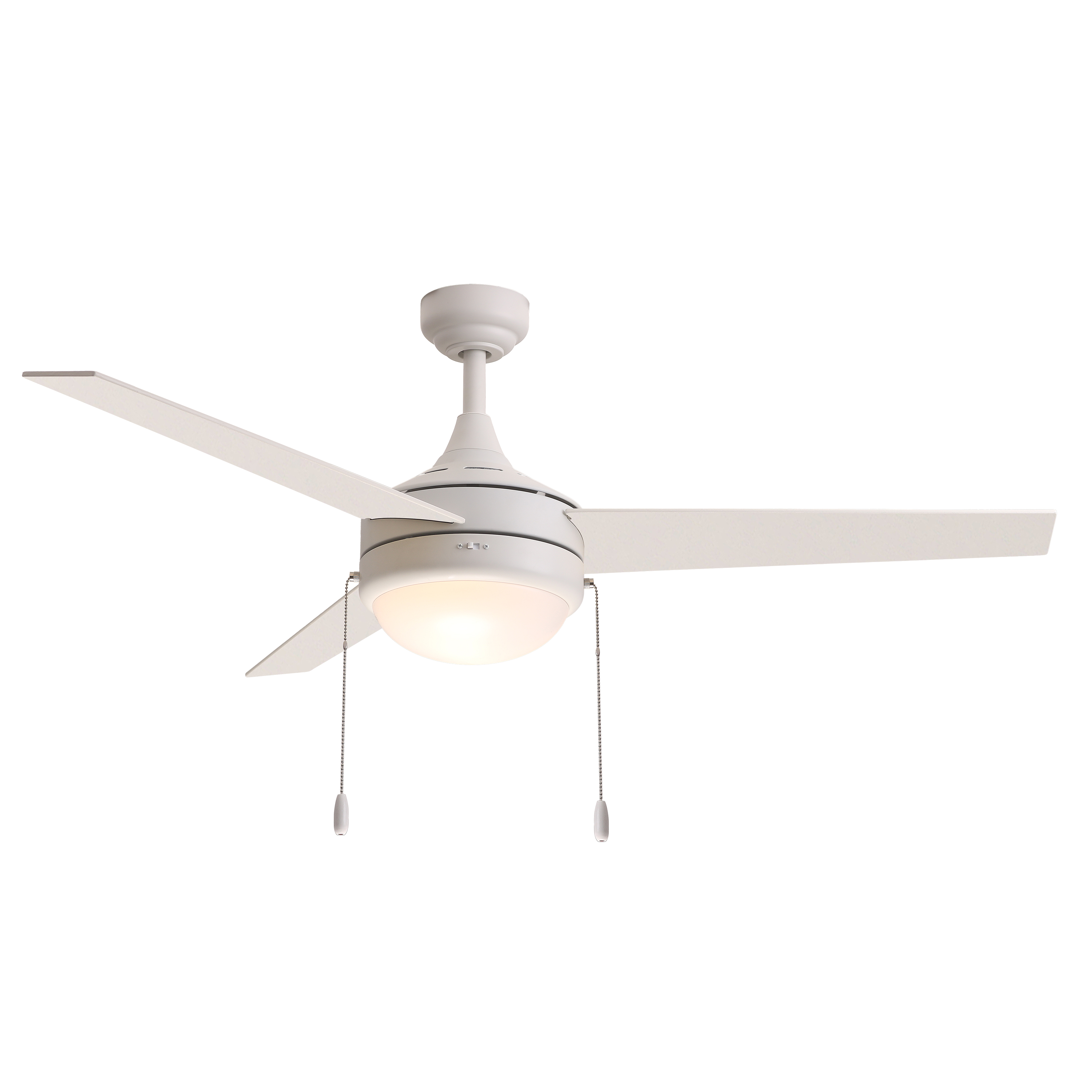A contemporary, yet transitional look at economical pricing, the Trio fan is finished in Satin Nickel with 3 straight fan blades in Black on one side and silver on the other side. The fan is powered by an included wall control or pull chain as well as LED JA8 compliant bulbs also included.