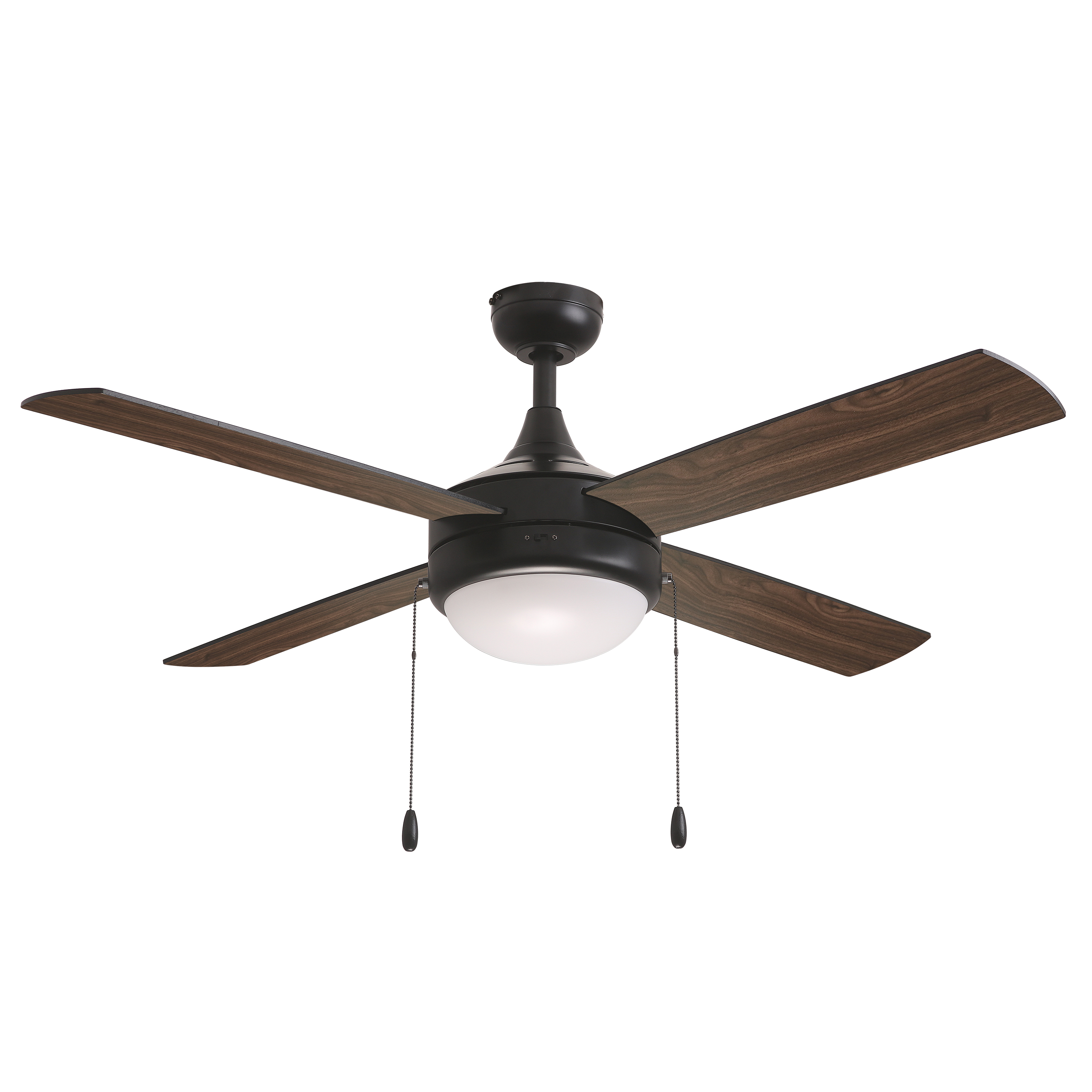 Featuring four straight fan blades in black on one side and silver on the other, as well as a black and matte white variant, the Quattro fan offers a modern yet transitional style at affordable prices. LED JA8 compatible lamps and a pull chain are supplied to power the fixture.